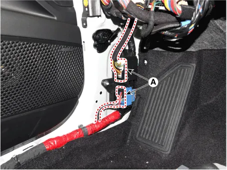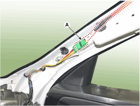 | 26. | Disconnect the connectors (A) and the mounting clips in the front pillar. [LH]