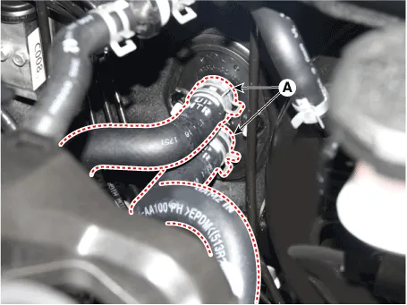 | 5. | Disconnect the heater hoses (A) from the heater unit.