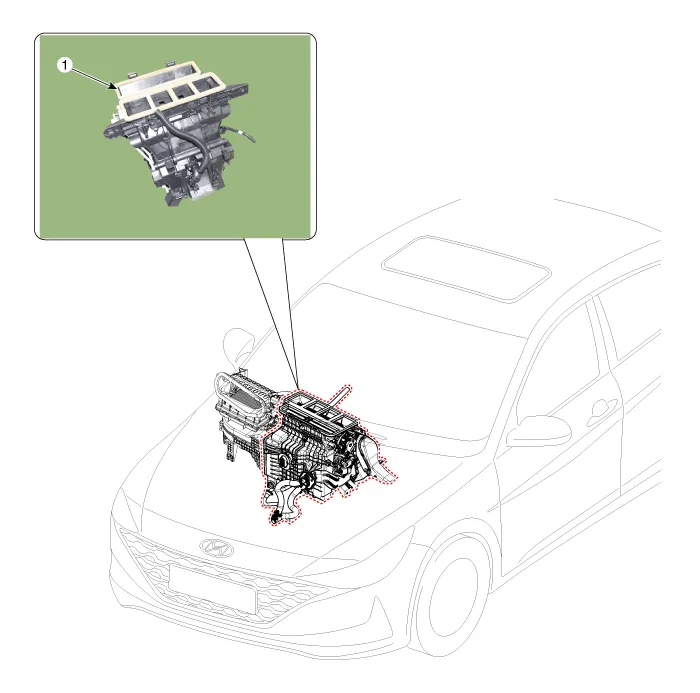 Repair procedures Replacement1.Disconnect the negative (-) battery terminal. 2.Remove the heater and blower assembly.(Refer to Heater - "Heater Unit") 3.