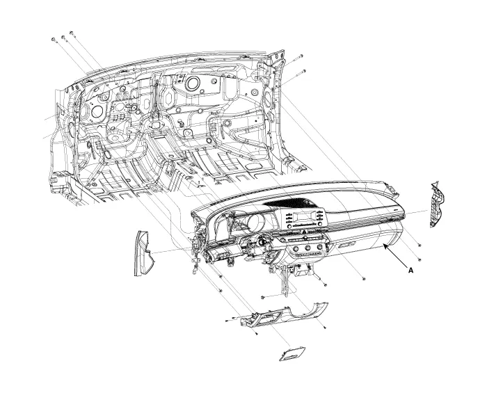 | 27. | After loosening the bolts and nuts remove the main crash pad and cowl cross bar assembly (A) together.