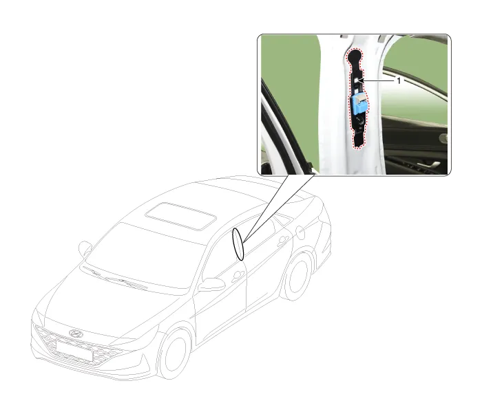 Components and components location Components Location1. Front seat belt pretensioner Repair procedures Replacement • When installing the belt, make sure not to damage the pretensioner.