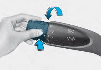 If you place the ignition switch in the ACC or OFF position with the headlamps ON, the headlamps (and/or parking lamps) remain on for about 5 minutes.