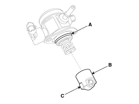 | 8. | Remove the mounting bolt (A) and remove the high pressure fuel pump from cylinder head assembly.