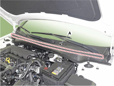 | 1. | Remove the hood weatherstrip (A).