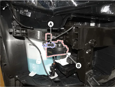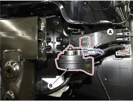 | 2. | Remove the bolts and disconnect the horn connectors (A), then remove the horn (B). [Low pitch]