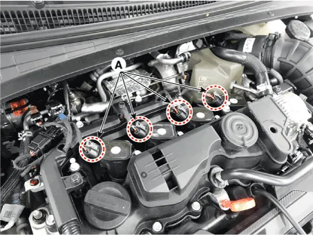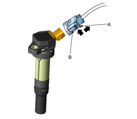 | 3. | Disconnect the ignition coil connector (A).