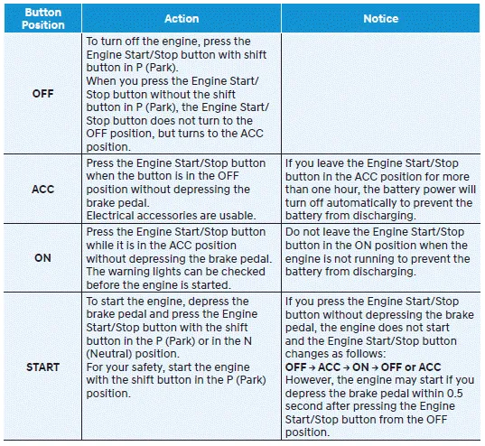 Do not press the Engine Start/Stop button for more than 10 seconds except when the stop lamp switch fuse is blown.