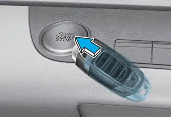 If the smart key battery is weak or the smart key does not work correctly, you can start the engine by pressing the Engine Start/Stop button with the smart key in the direction of the picture above.