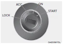 NEVER turn the ignition switch to the LOCK or ACC position while the vehicle is in motion except in an emergency. This will result in the engine turning off and loss of power assist for the steering and brake systems. This may lead to loss of directional control and braking function, which could cause an accident.