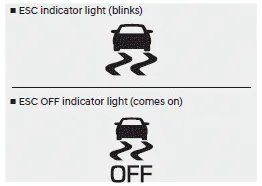 ESC ON condition When the ignition switch is in the ON position, the ESC and the ESC OFF indicator lights illuminate for approximately three seconds.