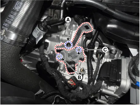 | 3. | Remove the air cleaner assembly and air duct. (Refer to Engine Mechnical System - "Air cleaner") |