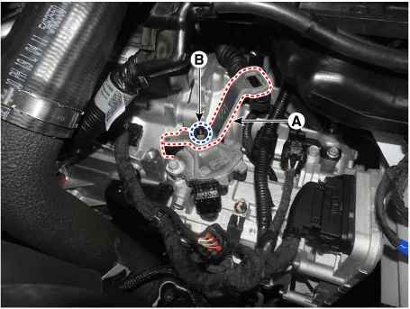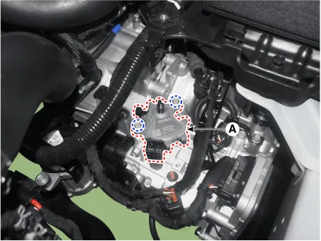 | 2. | Lightly tighten the inhibitor switch mounting bolts after installing the inhibitor switch (A).