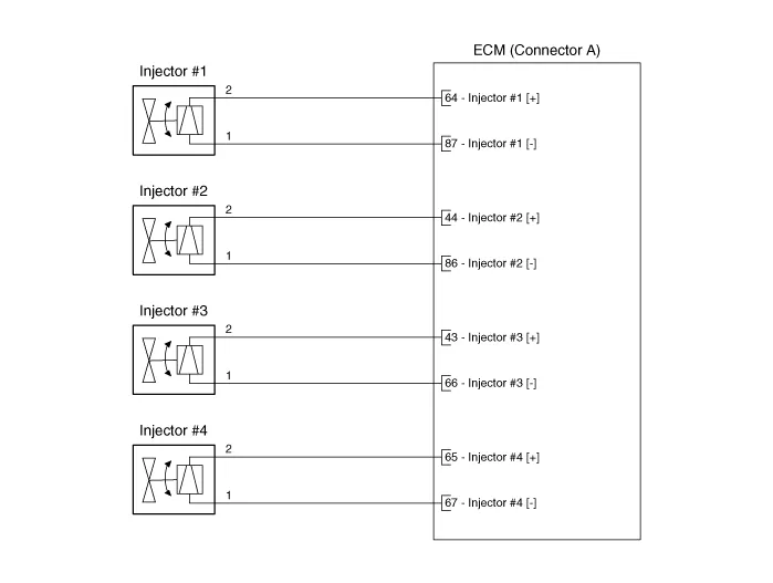 | 3. | Measure resistance between injector terminals 1 and 2. |