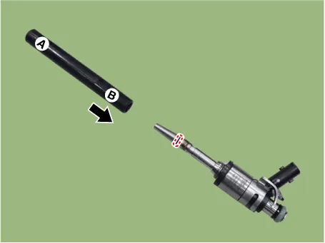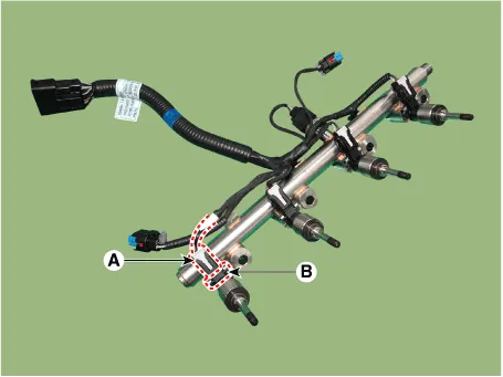| 4. | Remove the connector (A) and fixing clip (B), and then separate the injector from the delivery pipe.