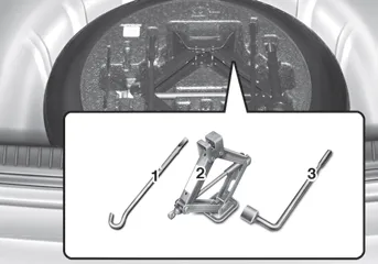 The jack, jack handle, and wheel lug nut wrench are stored in the luggage compartment under the luggage box cover.