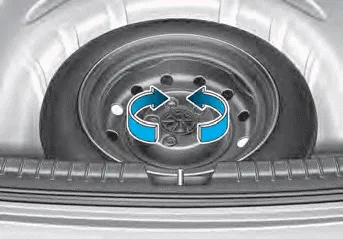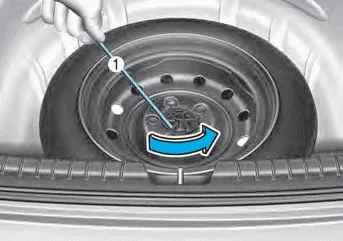 2. Turn the tire hold-down wing bolt counterclockwise with the jack handle.