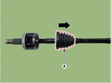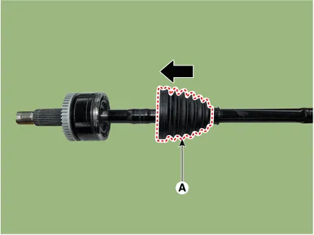 | 1. | Install the new boot (A) in the direction of the arrow.