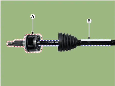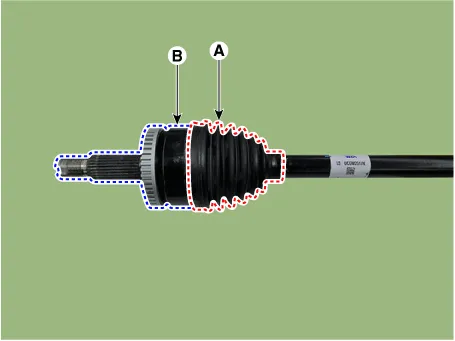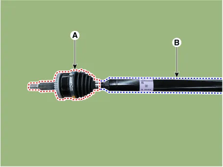 | 1. | Replace the wheel side joint assembly (A) and shaft (B).