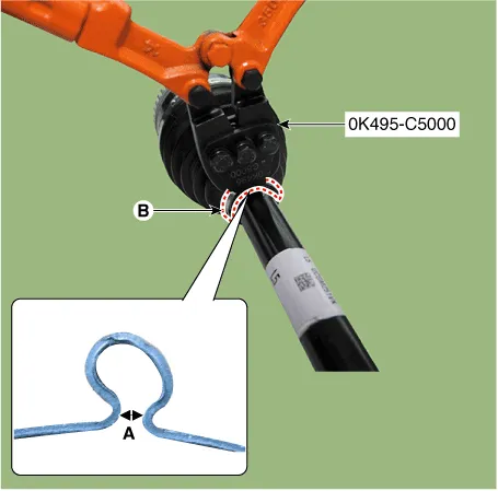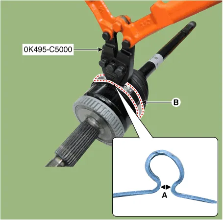 | 4. | Install the large diameter boot band (B) using SST (0K495-C5000).
