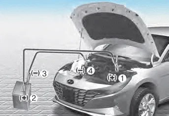 7. Connect the other end of the second jumper cable to the black, negative (-) chassis ground of your vehicle (4).