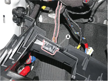 | 6. | Loosen the mounting screws, remove the crash pad lower panel (A).
