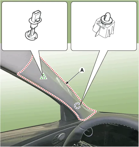 | 5. | Using a screwdriver or remover, remove the crash pad side cover (A). [LH]