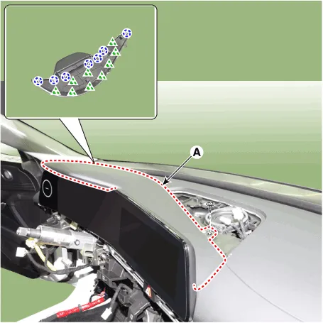 | 10. | Using a screwdriver or remover, remove the cluster fascia panel upper garnish (A).