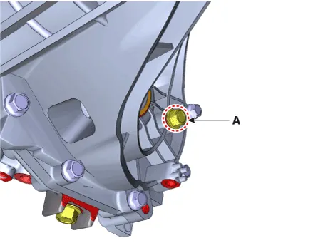 | 3. | Drain the manual transaxle oil after loosening the drain plug (A) and then tighten the drain plug with new gasket.
