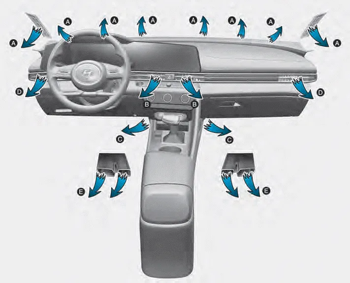 The MAX A/C mode is used to cool the inside of the vehicle faster. Air flow is directed toward the upper body and face.