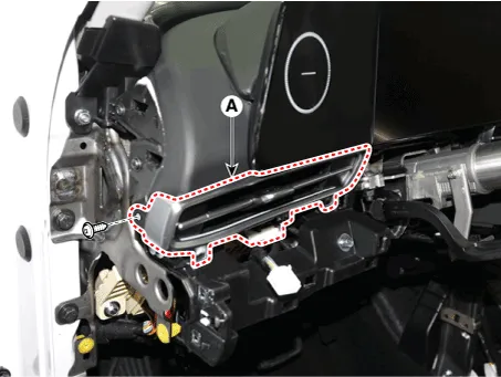 | 3. | Loosen the mounting screws and remove the crash pad mood lamp [RH] (A).