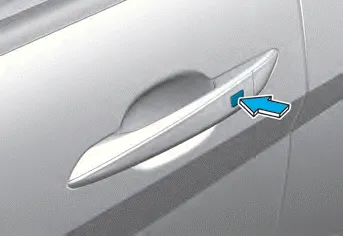 To lock the doors, press the button on the outside door handle while carrying the smart key with you or press the door lock button on the smart key.
