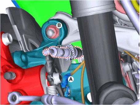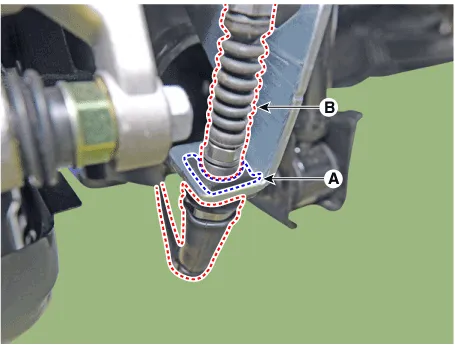 | 9. | Disconnect the parking cable (B) after remove the parking brake cable fixing clip (A). [Rear torsion beam type]