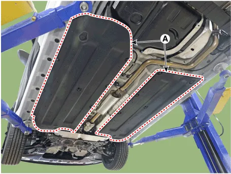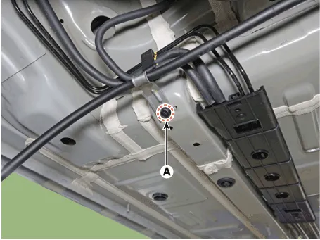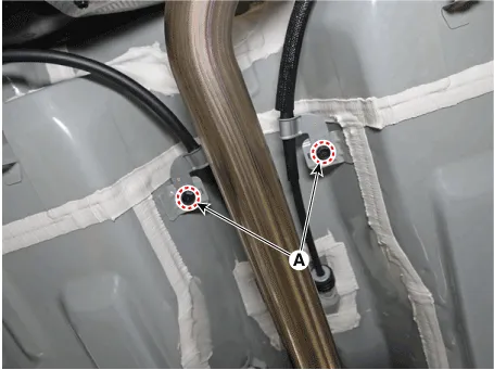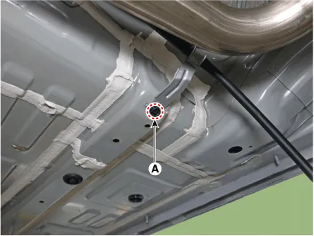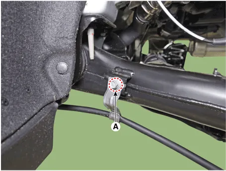 | 10. | Remove the parking brake cable bracket after loosening the mounting bolt (A).
