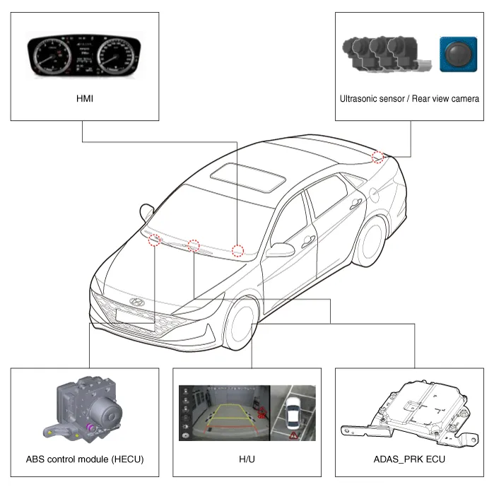 | 2. | Remove the ADAS PRK Unit. (Refer to Advanced Driver Assistance System (ADAS) - "Driver Parking Assistance System") |
