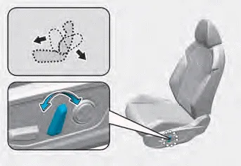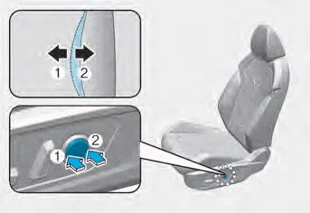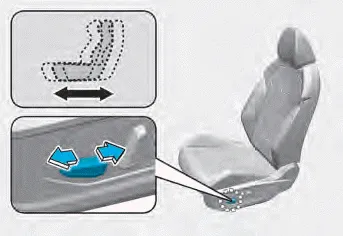 The front seat can be adjusted by using the control switches located on the outside of the seat cushion.Before driving, adjust the seat to the proper position so that you can easily control the steering wheel, foot pedals and controls on the instrument panel.
