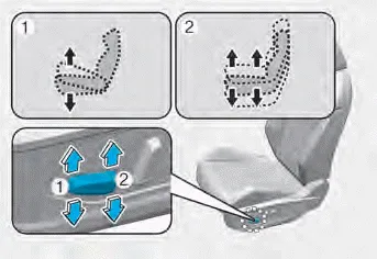 To change the angle of the front part of the seat cushion: Push the front portion of the control switch up to raise or down to lower the front part of the seat cushion. Release the switch once the seat reaches the desired position.