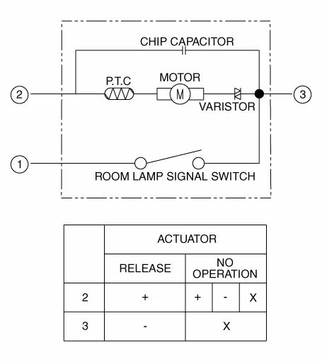 | 3. | Check actuator operation by connecting power and ground according to the table. To prevent damage to the actuator, apply battery voltage only momentarily.