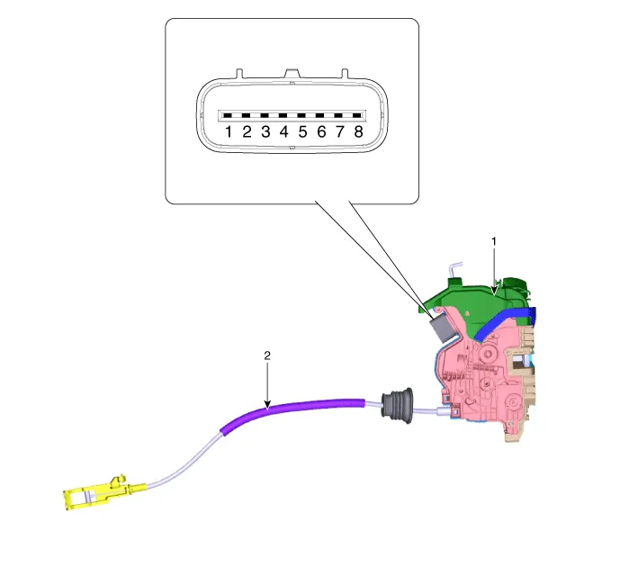 | 1. Door latch assembly | 2. Door latch cable |
