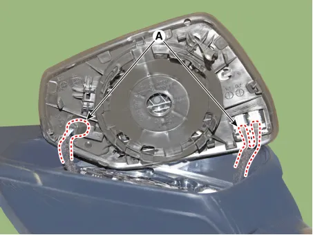 | 3. | Disconnect heat wire connectors (A) and then remove the mirror.