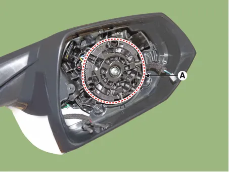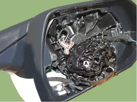 | 5. | Disconnect the connector (A) and then remove the mirror actuator.