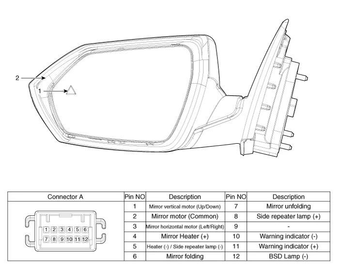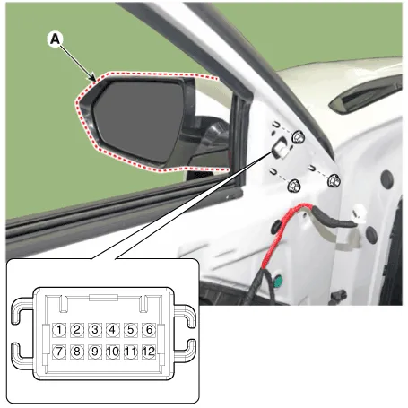 | 6. | Connect (-) battery terminal then check if door mirror lamp works normally. |
