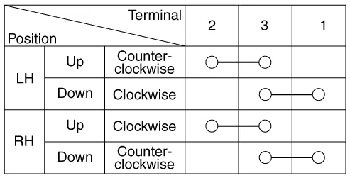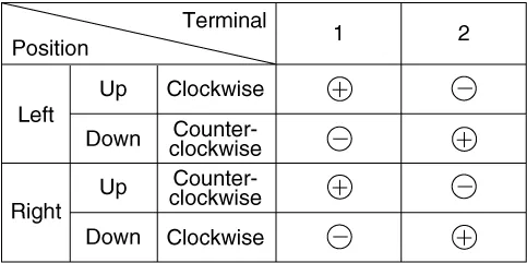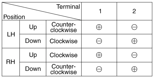 | 4. | Connect the terminal No.1 and No.2 to battery voltage (12V) and check that the motor operates smoothly when connecting the terminals below. [Safety Window Motor]