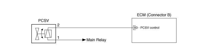 Purge Control Solenoid Valve (PCSV) is a solenoid valve and is installed on the surge tank and controls the passage between the canister and the intake manifold.