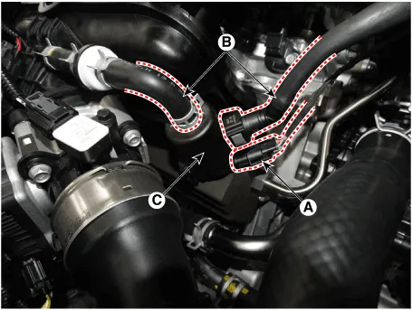 | 2. | Disconnect the purge control solenoid valve connector (A). |