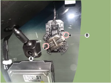 | 4. | Remove the rain sensor. | (1) | Insert a small flat-blade screwdriver (-) into a space at the bottom (B) or top (A), between the rain sensor and bracket. . |