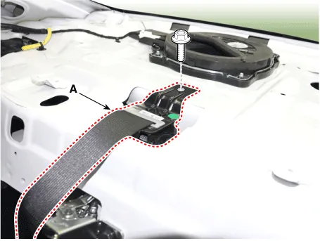 | 2. | After loosening the mounting bolts, remove the rear center seat belt retractor (A).