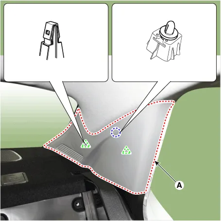 | 2. | Using screwdriver or remover, remove the rear pillar trim (A).