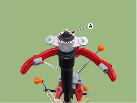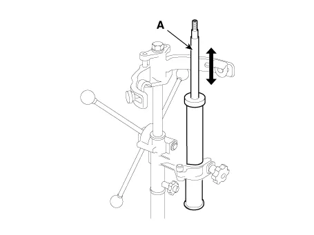 | 2. | Compress and extend the rear shock absorber rod (A) and check that there is no abnormal resistance or unusual sound during operation.