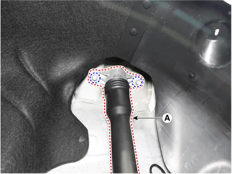 | 4. | Remove the rear shock absorber (A) from the torsion beam axle after loosening the mounting bolt and nut.