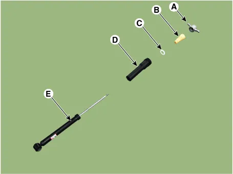 | 3. | Separate the insulator (A), bumper rubber (B), spacer (C), dust cover (D), shock absorber (E).